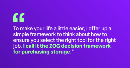 To make your life a little easier, I offer up a simple framework to think about how to ensure you select the right tool for the right job. I call it the ZOG decision framework for purchasing storage. If you’re early in your process of looking to upgrade, expand, consolidate, or modernize your enterprise storage infrastructure, have you ZOG’ed it?